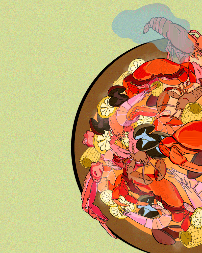 Sweet southern seafood" is a vibrant animated illustration created using Adobe Photoshop and After Effects.